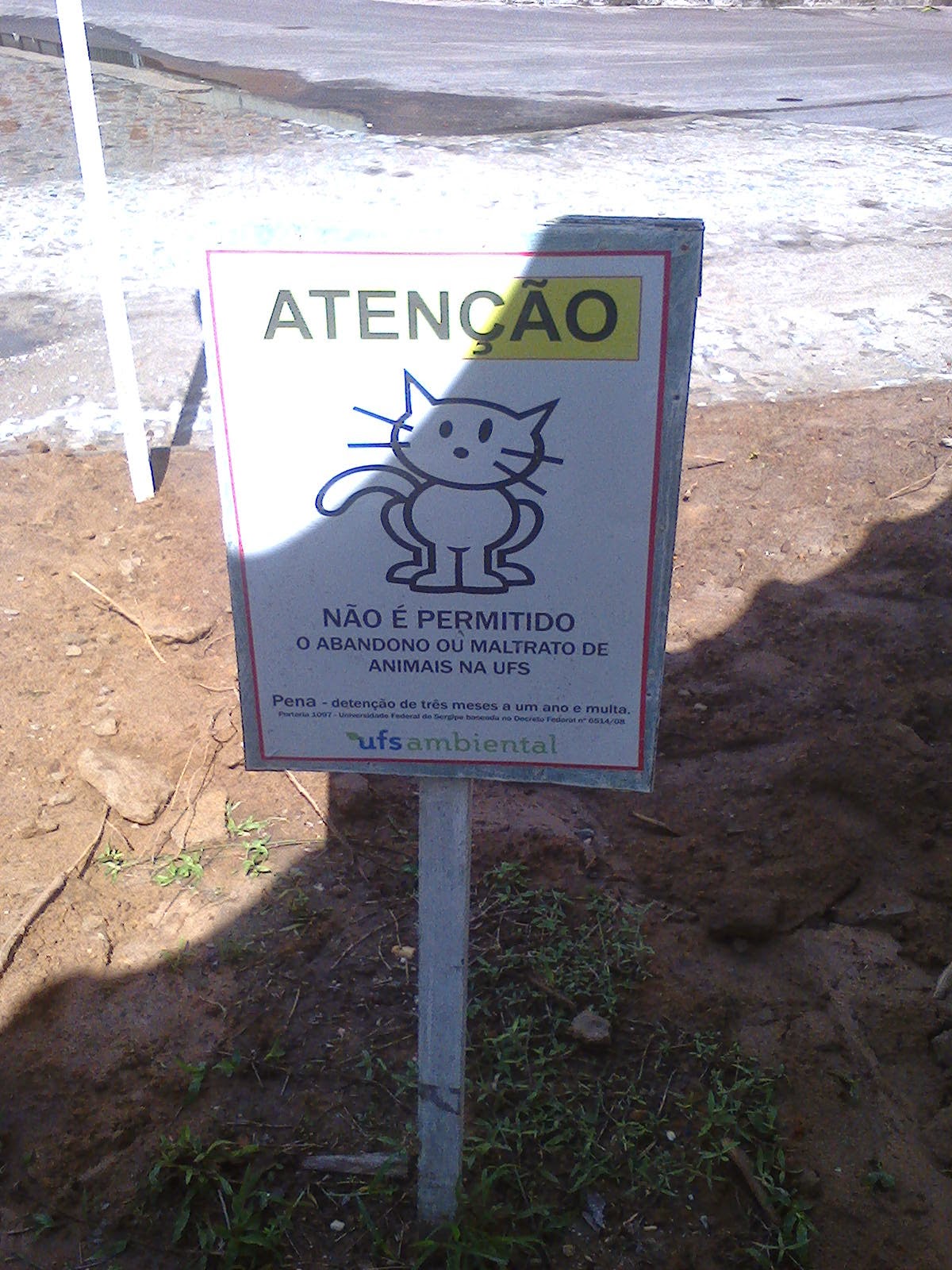 A ironia é que existe, em uma das entradas da UFS, uma placa avisando que não é permitido abandonar animais. O erro da placa é não avisar que não é permitido ignorar os animais que necessitam de atenção.