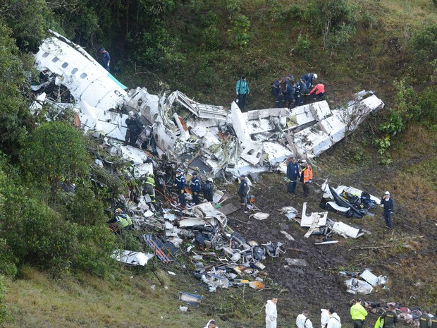 | Foto: Destroços do avião da Chapecoense. Fonte G1. |