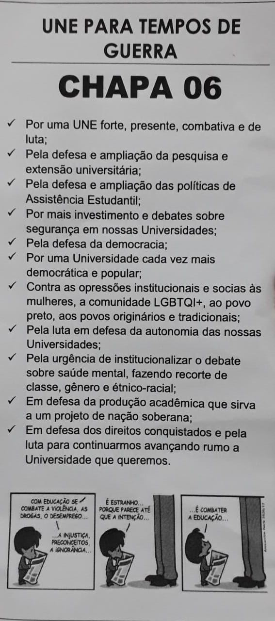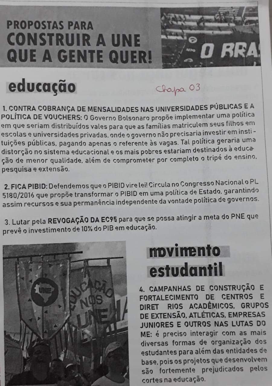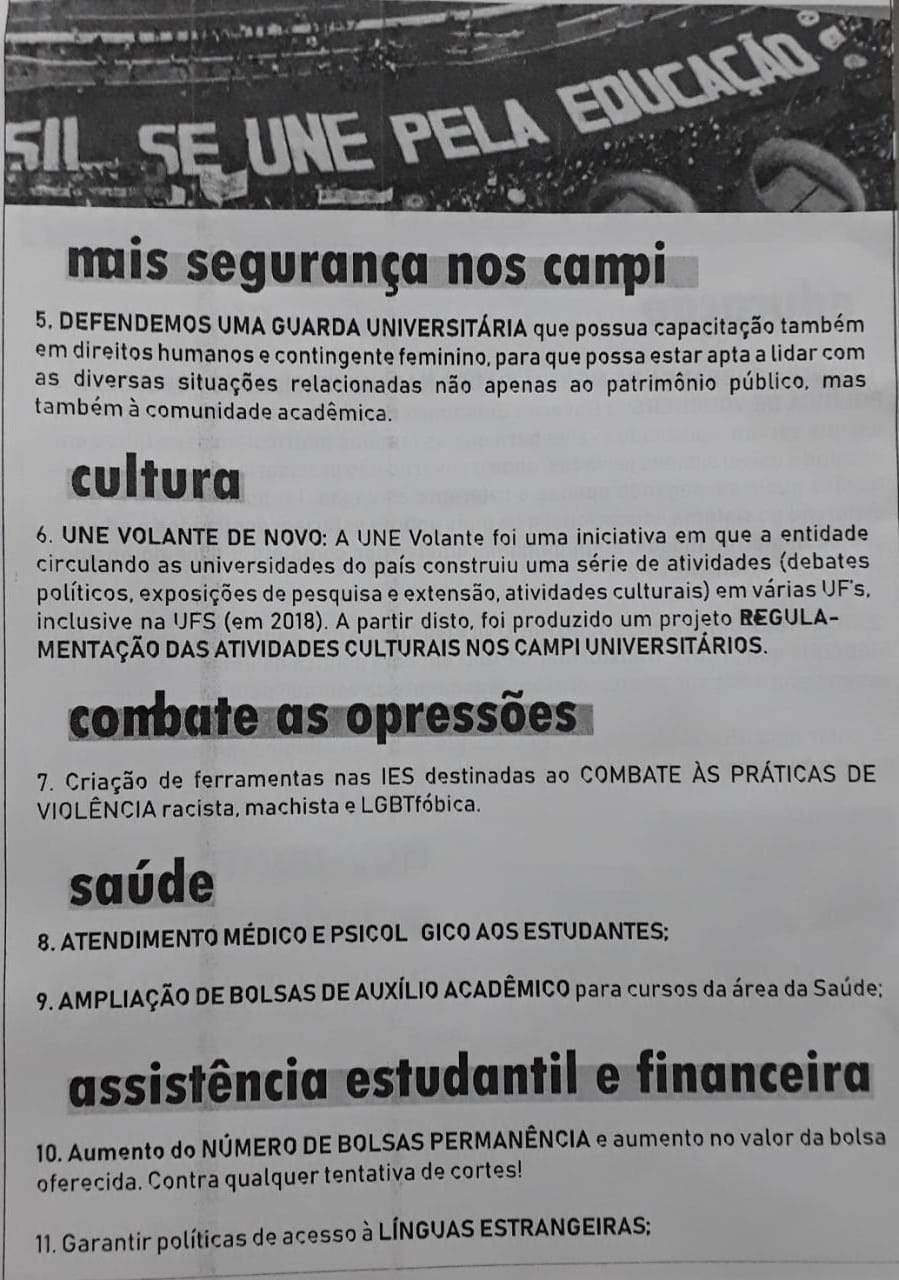 | Foto: Panfleto distribuído na UFS. Chapa 03. jun/2019. Arquivo Pessoal. |