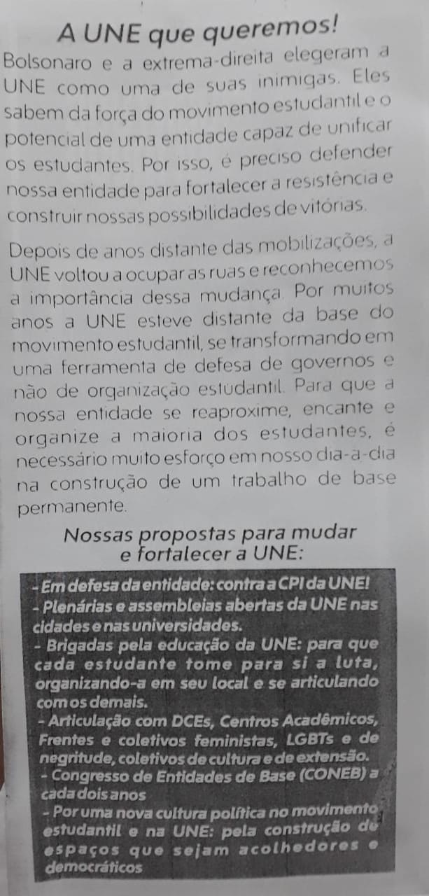 | Foto: Panfleto distribuído na UFS. Chapa 02. jun/2019. Arquivo Pessoal. |