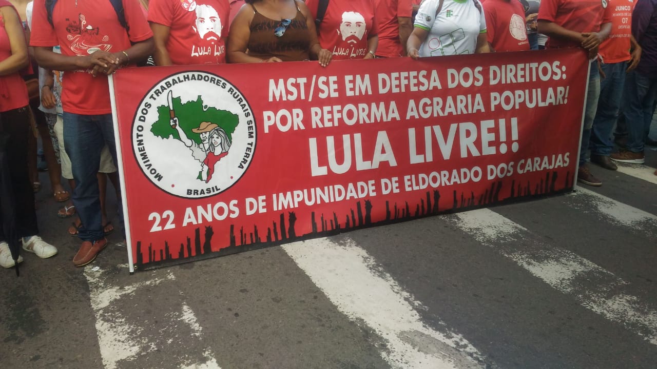 | Foto: Manifestantes contra o governo Bolsonaro. Aracaju 13/08/2019. |