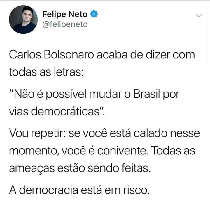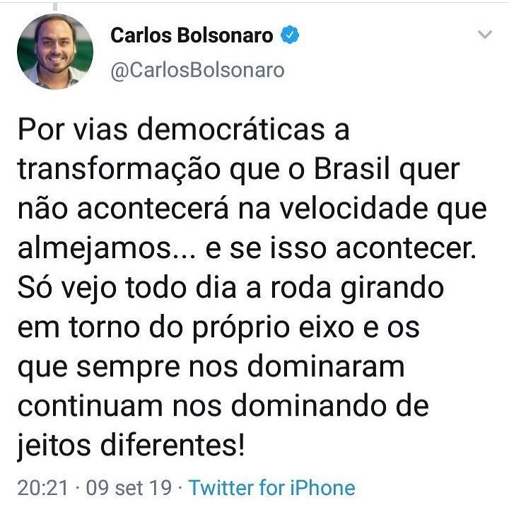 E enquanto o presidente afastado recuperava-se, seus asseclas, principalmente o filho, enviava via Twitter, a clara mensagem à Nação, incentivando, indiretamente, ao estabelecimento de um sistema político autoritário e opressor.